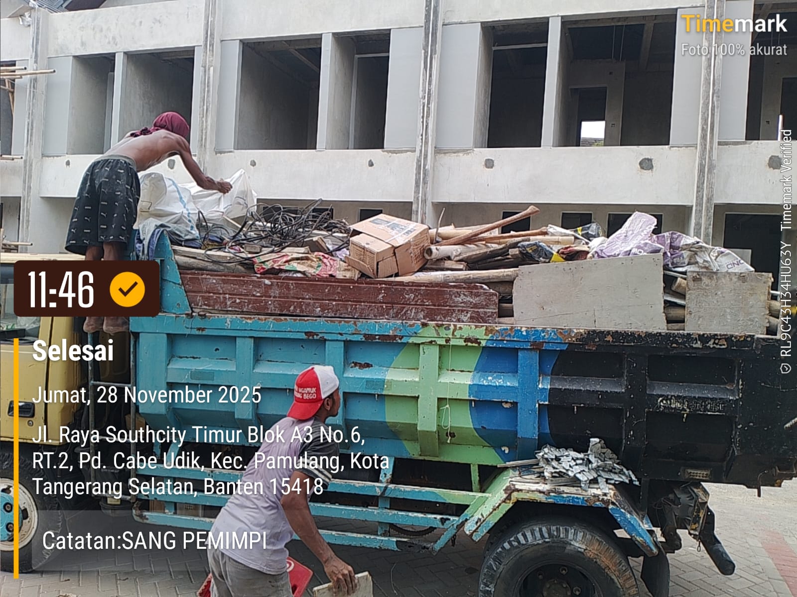 Membersihkan sampah proyek renovasi dengan cepat, rapi, dan profesional untuk menjaga area tetap aman.